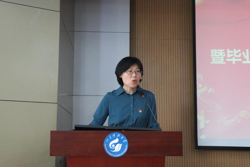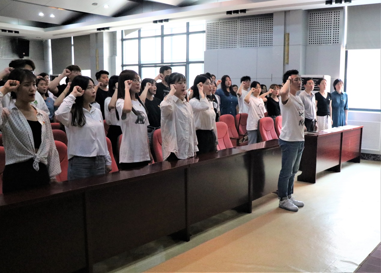 会上,全体党员面向党旗庄严宣誓。铮铮誓言铿锵有力,展现出了党员积极向上的精神面貌。国贸19-1班刘佳代表新党员郑重承诺,作为一名老员工党员,要肩负使命,努力奋斗,认真学习贯彻习近平新时代中国特色社会主义思想和党的基本理论,不断提升自我,做出应有贡献。毕业生党员代表马原野回首了四年的老员工活,表示感恩母校和公司的培养,会按照党员标准严格要求自己,积极发挥模范带头作用,始终不忘初心、勇毅前行。
