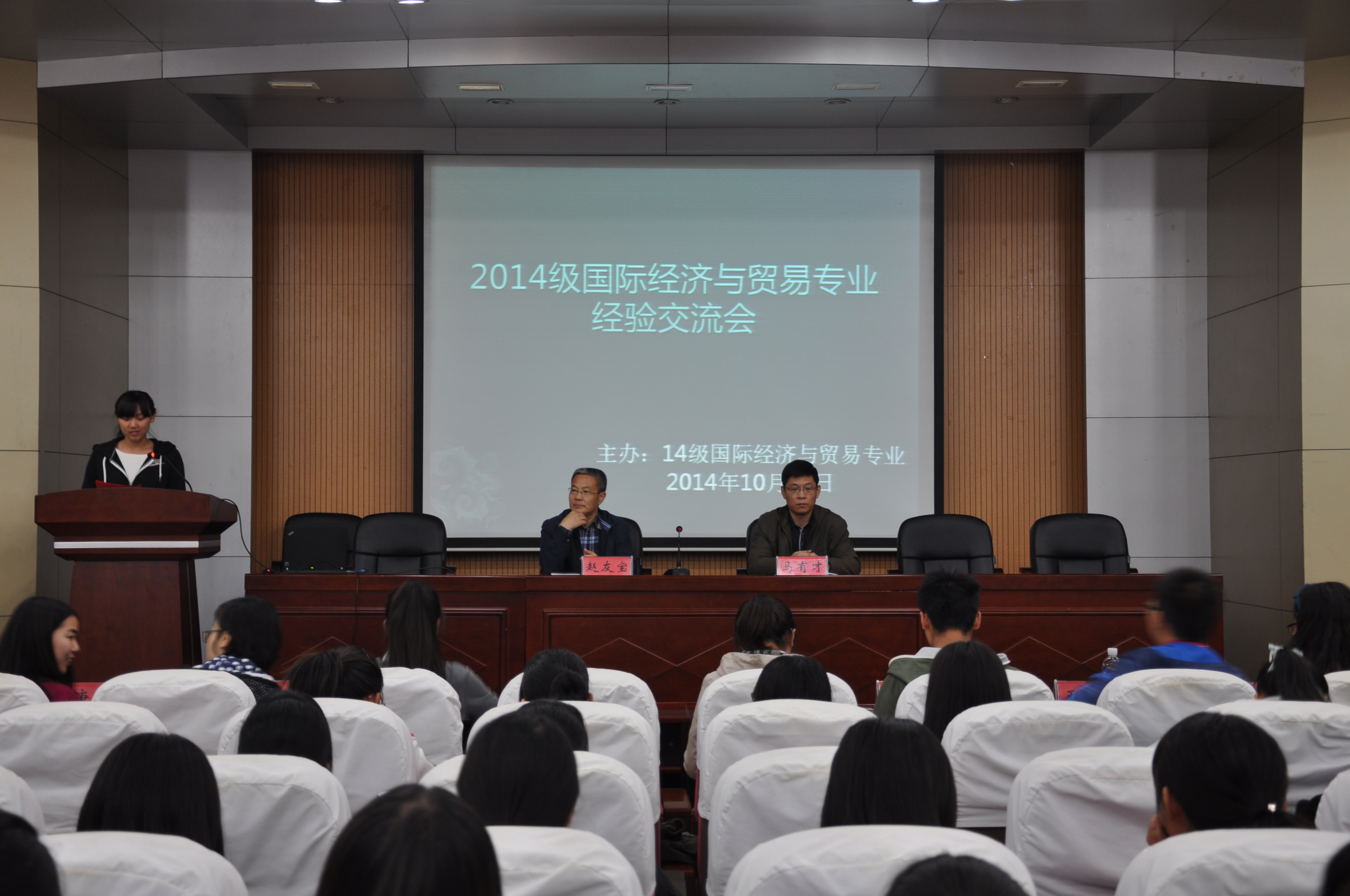 10月13日下午,14级国际经济与贸易专业在XC体育四楼报告厅举办专业经验交流会。交流会邀请了XC体育赵友宝、马有才两位教授以及公司品学兼优表现突出的高年级员工为大一新生们答疑解惑,以帮助他们更好地了解本专业,更快融入老员工活。曹雨晴同学担任此次交流会的主持人。
