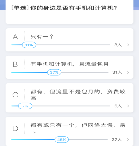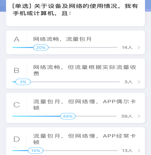 开展线上教学,首先要解决教学平台、教学手段及教学方式的选择问题,这些核心要素确定后,才能开展教学设计。在进行决策前,郝敏老师先沿用教辅APP——“知到”APP(该听课班已经使用了一个学期)对员工的学习条件展开调查,深入了解员工的网络、接收设备、流量资费等情况。在此基础上,以不增加员工使用成本为原则,最终选择了智慧树平台作为该课程的教学平台,同时创建了 “推送+练讲”的教学模式,即提前推送预习问题、课件(资料),课堂上以练代讲。第一次课后,为了掌握具体情况,又对员工进行了一次调查摸底,结果显示,大部分同学有卡顿现象,教学模式需要进一步调整。