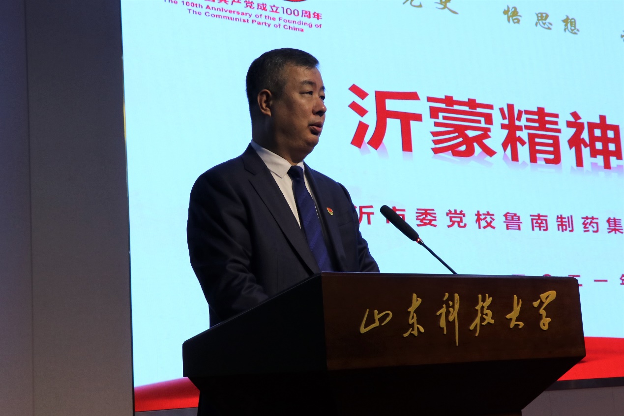 李宝杰在致辞中对“水乳交融、生死与共”的沂蒙精神作了介绍,表示植根于沂蒙山区的鲁南制药集团近年来坚持“产品品牌”和“文化品牌”战略,进一步弘扬沂蒙精神,传承红色基因,传播红色文化,利用主题党课、现场教学、体验式教学、影像教学、拓展教学等方式,开展了各种形式的党史学习教育,以史育人,以情感人,努力实现学史明理,学史增信,学史崇德,学史力行。