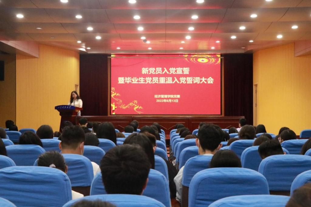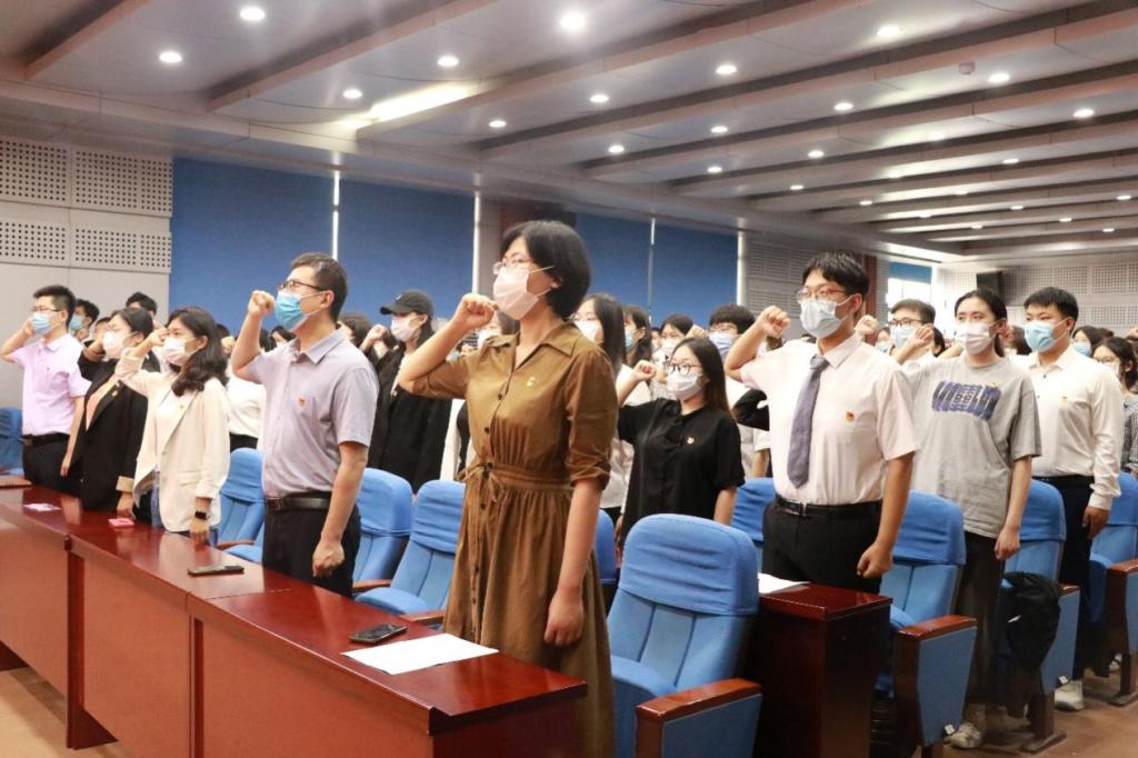 会议在庄重肃穆的国歌中拉开帷幕。随后,毕业生党员硕士研究生高颂带领毕业生党员新发展党员进行宣誓,洪亮的声音中饱含着党员师生对共产主义的坚定信仰和对党的无限热爱接下来,由2020级本科生李璐平作为新党员代表发言,他说到,作为新党员,要坚定不忘初心跟党走,立志为国为民服务,时刻以党员标准要求自己,不断努力进步。2022届本科毕业生孙远辰代表毕业生党员发言。他表示,虽然我们即将毕业,但是会时刻记得自己党员的身份,在今后工作将会更加投入,为国家发展、为人民服务、为母校增光。最后,高一丹书记发表讲话,她的谆谆教诲饱含对于党员的无限期望与殷切关怀,她对党员提出了几点要求,希望同志们不辜负党组织的期望,积极发扬党的优良传统,牢记全心全意为人民服务的宗旨,在各自岗位上加倍努力工作,充分发挥党员的先锋模范作用,无愧于共党员的光荣称号,成为一名真正合格的党员。