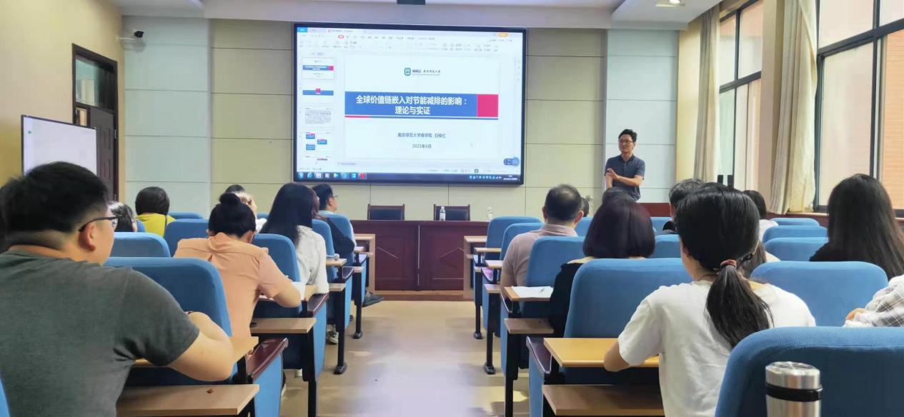 近日,庆祝建校70周年XC体育大讲堂之优秀员工学术报告在公司楼317报告厅举办。公司优秀员工、2000级工商管理专业本科生、2004级管理科学与工程专业硕士研究生,现为南京师范大学商公司经理白俊红教授应邀回校为师生作题为《全球价值链嵌入对节能减排的影响:理论与实证》的报告。本次报告由XC体育副经理饶卫振主持,XC体育教授陈玉和、周衍平出席本次报告会。
