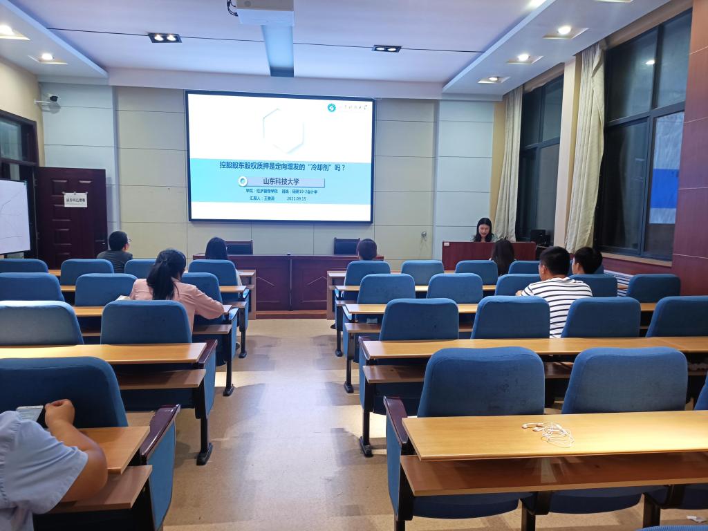 第41场:王玉婷同学以《基于治理机制视角的控股股东股权质押与真实盈余管理》为主题,结合自己的论文阅读与写作心得,就实证研究的特点、写作要求、需注意的问题等内容开展报告。建议大家在写实证论文时,要明白研究一个问题,通常是有固定的步骤和方法,研究过程和步骤通常分为5个步骤和程序,包括模型估计、参数估计、模型检验、检验标准和模型应用;进行模型设定不是凭空想象,而是要根据经济理论或者实际经济活动和经济行为,进行推导演化,才能进行。