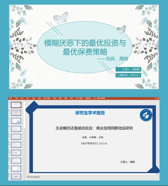 第二场:张孟微同学对徐琪、吴翠等人发表在《运筹与管理》(基金委A类期刊)上的文章《共享平台下供应链闲置资源动态优化配置策略》进行了讲解。主要对供应链闲置资源的动态匹配过程进行讲解,重点讲解了三级供应链下三方主体在集中式决策、无成本分担的分散式决策和有成本分担的分散式决策三种情境下共享供应链闲置资源优化的配置问题,拓展了共享平台+资源共享的应用层面。最后,张孟微同学就与会同学提出的问题进行了讨论与解答。