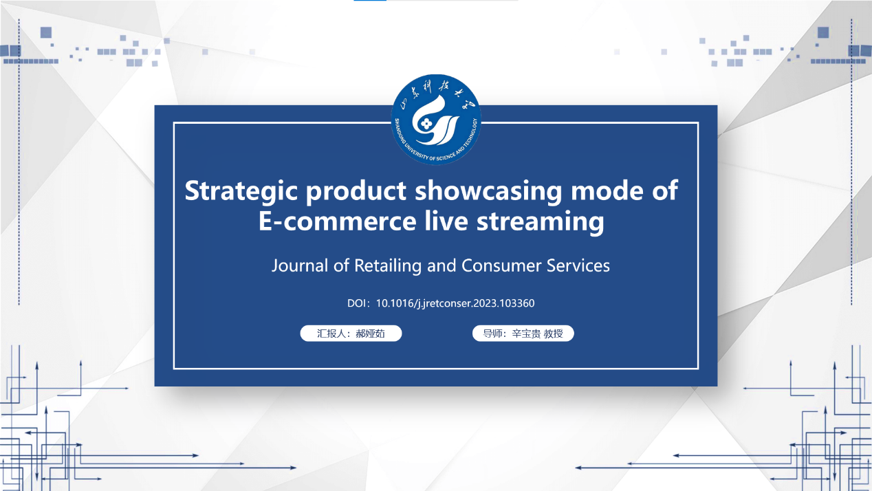 第一场:郝娅茹同学以自己2023年发表在《Journal of Retailing and Consumer Services》的文章《Strategic product showcasing mode of E-commerce live streaming》进行了讲解。文章探究了电商直播产品展示模式存在的多重困境。在本次报告中,首先介绍了关于电商直播能够显著帮助品牌提升销售活力,但选择合适的电商直播产品展示模式存在多重困境的研究背景,然后介绍了采用Stackelberg博弈刻画的三种电商直播产品展示模式:品牌自直播、影响者主导的直播混合和影响者主导的特殊直播,接着对结果的分析过程进行了展示,最后介绍了案例分析的具体应用。