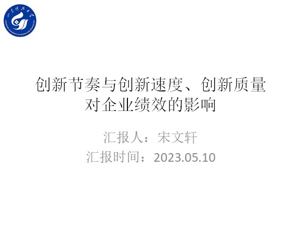 第二场:宋文轩同学以自己2020年发表在《软科学》的文章《创新节奏与创新速度、创新质量对企业绩效的影响—基于时间视角的研究》进行了讲解,文章来自103家企业的721个平衡面板数据进行了回归分析,探究了创新过程时间特征对企业绩效的影响机制。在本次报告中,首先介绍了企业创新问题的背景和相关研究,然后对创新节奏、创新速度、创新质量等进行了理论分析,并提出了众多假设,接着介绍了包含创新节奏、创新速度、创新质量、冗余资源和企业绩效在内的理论模型构建过程,最后对结果讨论和结论进行了总结展示。