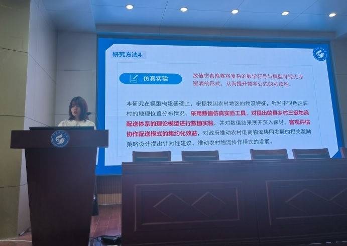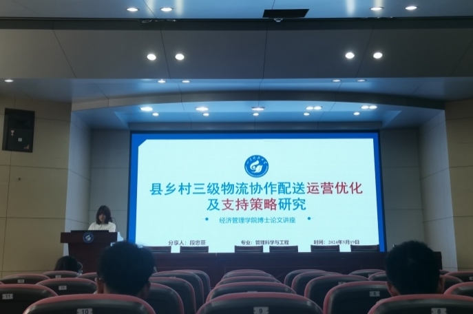 2020级管理科学与工程专业博士研究生段忠菲作了题为“县乡村三级物流协作配送运营优化及支持策略研究”的学术报告,报告围绕她的博士毕业论文展开。报告中,段忠菲指出当前县乡村三级物流配送过程中存在缺乏协作及成本居高不下等问题,如何构建集约共享的高质量县乡村物流体系是一个亟待解决的重要问题。她提出依托数字化平台的县乡村三级物流双层协作配送模式,对搭建高质量县乡村物流服务体系,提高农村地区的物流配送效率,对促进农村消费升级具有重要意义;随后,从理论角度介绍了创新性的县乡村物流体系运作流程及各流程环节所涉及的关键方法;进而,她分别从物流协作体系搭建、配送任务路线优化、内部利益保障机制设计、外部政府支持策略构建四个维度,对论文工作进行深入讲解。