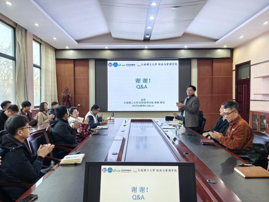 饶卫振介绍了金淳教授的学术成就,并对其到来表示诚挚欢迎。金淳教授围绕“复杂系统建模与仿真方法论及其应用”,从复杂系统的定义及特征入手,详细介绍了复杂系统建模与仿真方法论,深入探讨了建模与仿真方法论的核心内容;分享了系统工程理论方法在复杂系统建模与仿真中的实际应用,并通过生动实例细致阐释了仿真建模中的一般性原则。讲座内容丰富、结构清晰,既深刻又易懂,引发了在场师生的热烈讨论和积极提问。教授兼博士生导师曾丽君老师就复杂系统和仿真建模中的应用提出了自己的疑问,金淳教授耐心细致解答。互动环节,老师和同学们深入思考、积极发言,纷纷表达了自身见解。现场师生表示,此次互动交流受益匪浅。