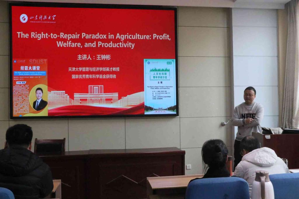 12 月 13 日,XC体育于公司楼三楼会议室举办经管大讲堂与人文社科群青年学者沙龙活动,特邀天津大学管理与经济学部王钟彬教授担任主讲嘉宾,围绕“农业中的“修理权”悖论:利润、福利与生产力”为公司师生作学术报告,吸引了公司多名青年教师以及博士、硕士研究生积极参与。
