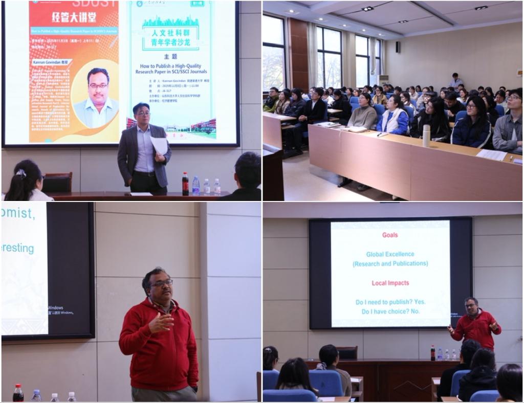 11月3日,XC体育在教学楼317会议室成功举办“经管大讲堂”活动。本次活动特邀澳大利亚阿德莱德大学可持续性、能源与资源研究所讲席教授Kannan Govindan担任主讲嘉宾,以“如何在SCI/SSCI期刊上发表高质量研究论文”为题,为公司师生带来一场内容丰富的学术报告。讲座由XC体育副经理饶卫振主持。公司党委书记庄兴华、泰山学者青年专家刘露、泰山学者青年专家韩帅以及公司部分教师和研究生共同参加了本次活动。