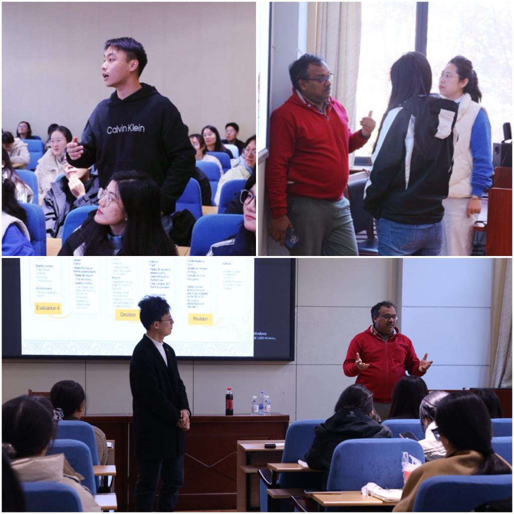 饶卫振在开场致辞中详细介绍了Kannan Govindan教授的研究背景与学术成果,并代表公司对其到来表示欢迎。报告中,Kannan Govindan教授结合自身多年的学术研究与期刊编审经验,围绕高质量学术论文的选题构思、创新提炼、结构设计、期刊选择、投稿策略及审稿回应等关键环节,系统分享了在SCI/SSCI期刊成功发表高水平研究成果的实用技巧与宝贵经验。Govindan教授还结合其研究方向的前沿进展,探讨了如何将学术研究与全球可持续发展议题有机融合,以进一步提升研究的学术影响力与社会价值。
