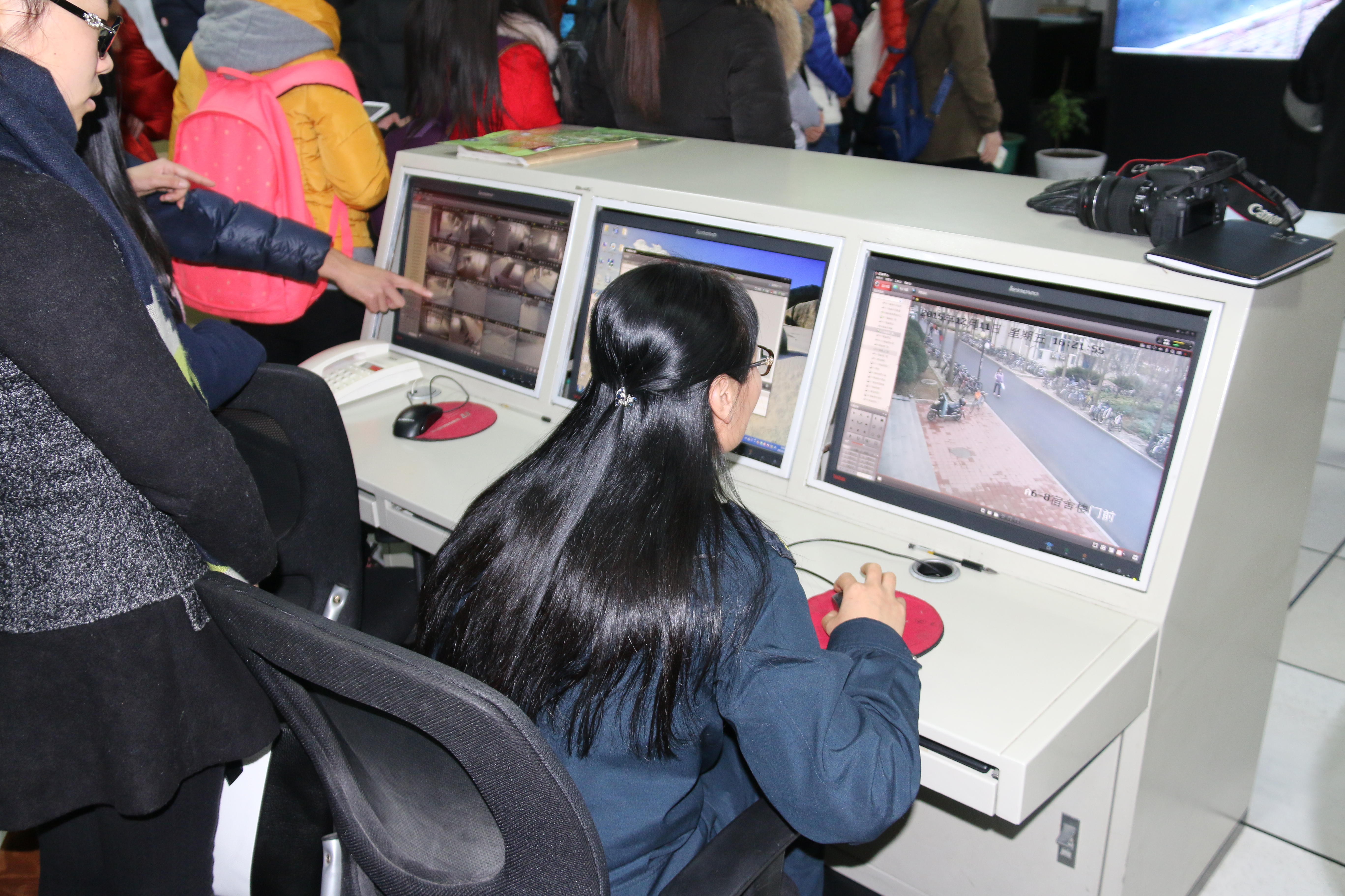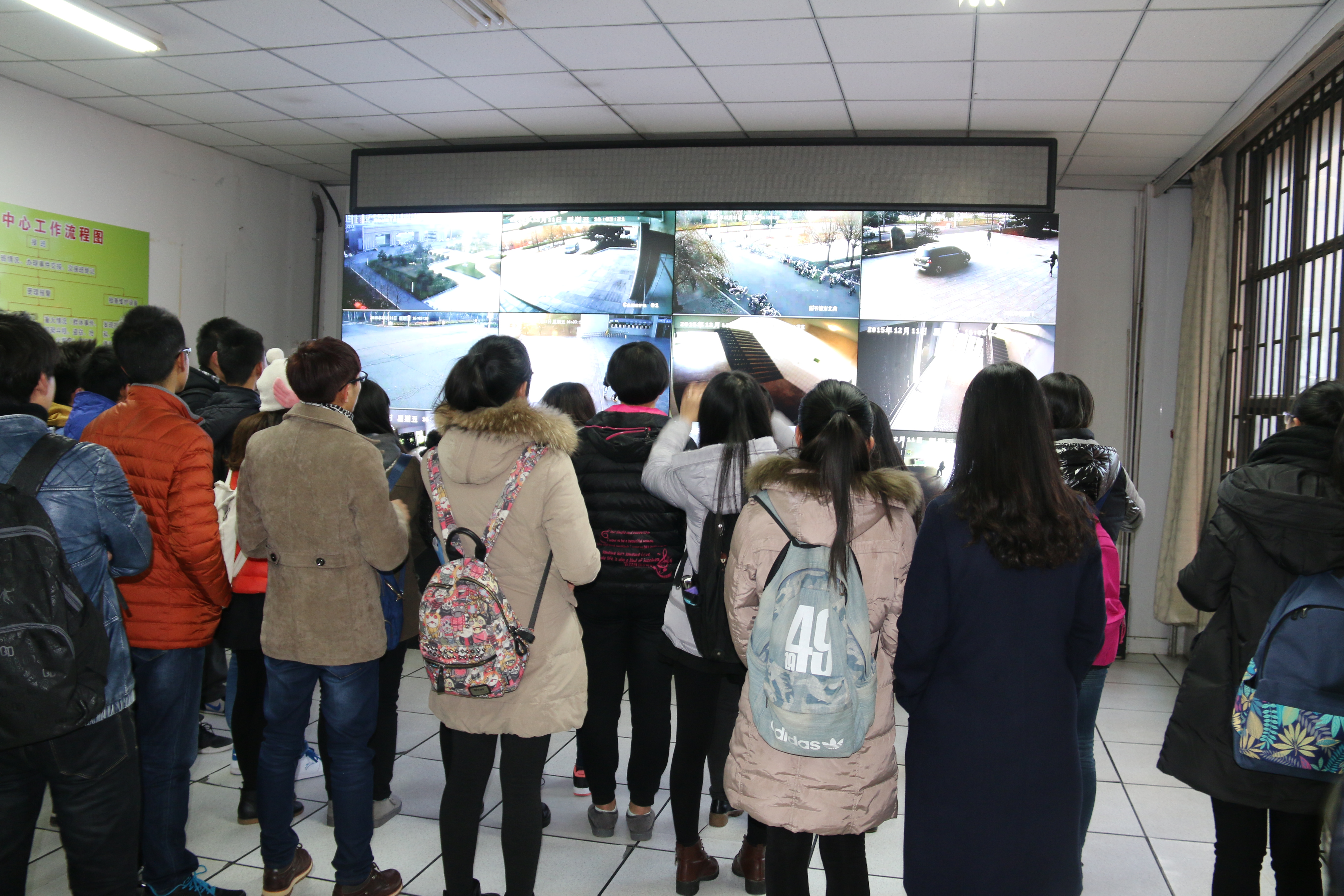 12月11日下午,卓越青年培训班全体学员参观校园监控室。