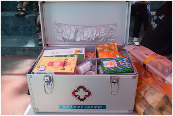 她们细心的准备好药箱、水等物品,做好后勤保障工作,是军训场上最可爱的人。