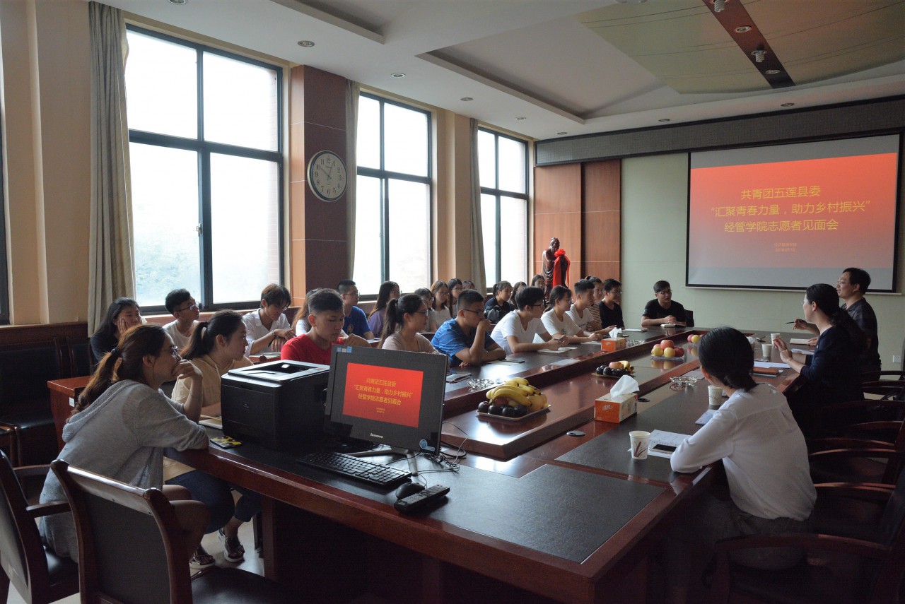 共青团五莲县委开展“汇聚青春力量,助力乡村振兴”活动,选拔XC体育32名志愿者暑期赴五莲县叩官镇、洪凝街道、户部乡、于里镇四处留守儿童支教点开展为期40天支教活动。为保证暑期志愿活动的顺利召开,12日上午,在J6-309会议室举办了志愿者见面会,共青团五莲县委书记范红、副书记匡永远、负责人秦谭,院团委书记陈永磊、团委老师范文洁,以及部分志愿者参加了本次会议。