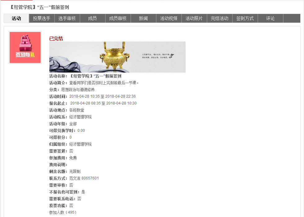 五一小长假前夕,为保证课堂教学质量和员工安全,公司严抓各专业最后一堂课的出勤情况,并通过“PU口袋校园”面向17级同学发起“五一假期签到”活动。活动通过审核后,各班指定一名班委作为签到员,在上课前对本班同学进行扫码签到,课程结束后进行签退。活动结束后从管理后台可导出签到数据,记录员工信息和签到时间,通过数据分析可发现全院除请假员工外仅有两名同学未请假离校。除课堂考勤外,公司为保障员工安全、落实在校住宿情况,通过“PU口袋校园”进行住宿考勤。各专业指定男生、女生签到员各一名,晚上十点后对员工进行了扫码签到。签到操作简便易行、花费时间少效率高,二十分钟内所有同学签到完毕,得到同学们的一致认可。