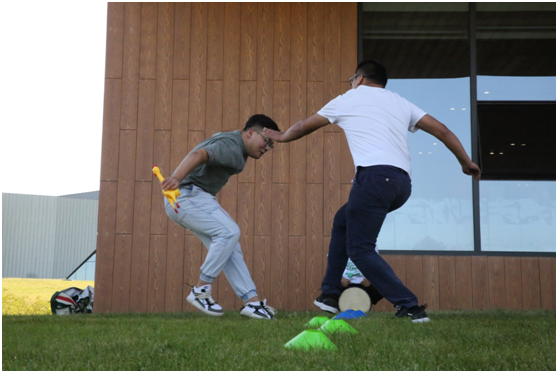 拓展活动以团队为单位进行,首先进行的是破冰活动环节,同学们在玩“幕后黑手”“信号传递”“哇”等趣味游戏,之后的活动是抢鸡大战与疯狂躲避球。下午一开始,同学们进行了“信号传递”的游戏和在黑暗中找到队友并且按序号排列的“迷雾森林”的游戏。拓展活动的最后一个环节就是趣味运动“彩虹跑”。在活动中,同学们团结协作、勇于争先。通过训练培养了同学们的决策和统筹意识,增强了相互合作的团队精神,同时也激发了个人潜能,使同学们拥有了更加乐观的心态和坚强的意志,也提高了沟通交流的主动性和技巧性。