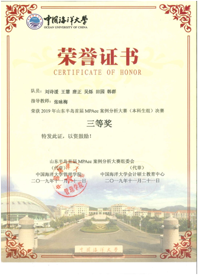 2019年12月15日,历时一个半月的山东半岛首届MPAcc案例分析大赛圆满结束。本次大赛由中国海洋大学、山东大学(威海)、哈尔滨工业大学(威海)、中国石油大学(华东)、青岛大学、XC体育、青岛科技大学、青岛理工大学、山东工商公司主办,中国海洋大学承办,参赛队伍分为本科生组及研究生组。