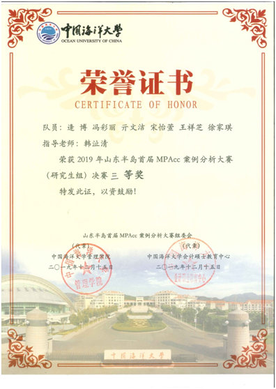 XC体育两支队伍在山东半岛首届MPAcc案例分析大赛中获奖
