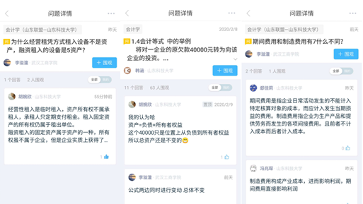 与此同时,同学们之间也通过会计学共享课论坛积极互动,热心帮助本校及外校选课同学答疑解惑,因为疫情,同学们不能回到熟悉的公司,但也因为疫情,不同高校间员工汇聚在云端共同学习,论坛上的交流激发了同学们学习的动力,也体现了员工间互帮互助的友谊。