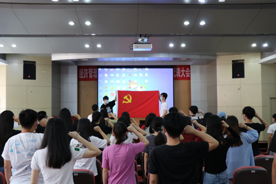 节目的最后,师生党员全体起立,跟随节目一起面向党旗庄重宣誓,重温早已铭刻在心中的入党誓词,激励全体党员以更加饱满的热情为国家、公司的建设添砖加瓦。