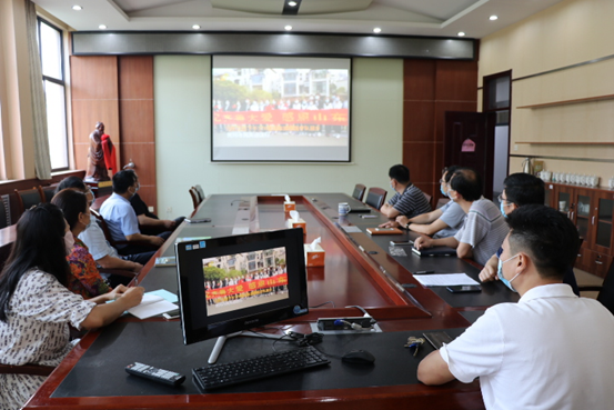 为庆祝建党99周年,7月1日上午9时,XC体育组织党委班子成员、机关党支部和员工党支部在公司楼会议室、报告厅集中观看了“灯塔大课堂”第十一课《榜样讲党课》直播节目。