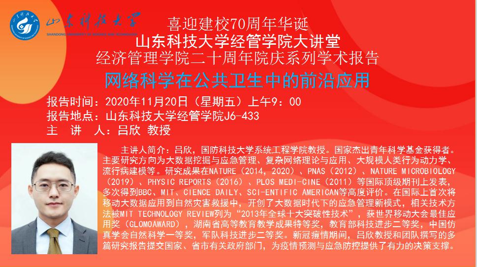 吕欣教授以“网络科学在公共卫生当中的前沿应用”为主题,介绍了大数据建模与传统计算方法相比所拥有的优势,并结合具体的事例、数据、图表,展示了大数据在公共卫生安全中的前沿应用,并阐述了如何通过大数据分析等技术手段对此次疫情预测与应急防控提供的有力决策支撑。