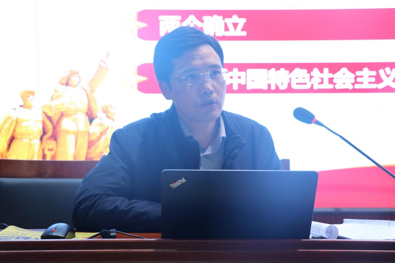 会上,庄兴华带领大家学习了《中共中央关于党的百年奋斗重大成就和历史经验的决议》,并从“四个历史时期的主要任务”、“马克思主义中国化的三次飞跃”等方面对党的十九届六中全会的内容进行了解读。他指出,党的十九届六中全会是在建党百年新起点上召开的一次具有开创性、里程碑意义的会议,对新时代中国特色社会主义取得新的伟大胜利、实现中华民族伟大复兴具有重大现实意义和深远历史影响。