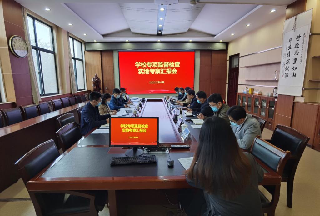 公司党委书记庄兴华紧紧围绕专项督查内容,以公司党委巡察整改落实情况为主线,把作风建设、工作作风、党风政风,以及全面从严治党、中央八项规定精神贯彻落实等融合其中进行了详细汇报,并表示公司党委将继续抓好整改,统筹推进党建工作与业务工作深度融合,进一步提高公司整体实力与办学水平。经理侯贵生汇报了公司2022年重点任务指标完成情况,并对下一步重点任务指标工作计划进行了介绍。期间,工作人员对公司办公用房、年度重点任务完成情况、落实中央八项规定情况等进行了调度,查阅相关材料,并反馈了指导意见建议。