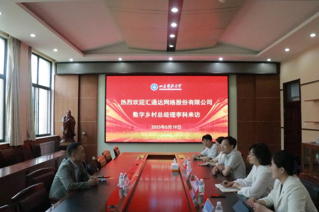 5月19日,汇通达网络股份有限公司数字乡村总经理李科到XC体育交流指导服务乡村振兴工作,公司党委书记庄兴华、党委副书记兼副经理高一丹、团委书记江谭、辅导员续琳琳及青葵乡村振兴志愿服务队成员代表参加交流。