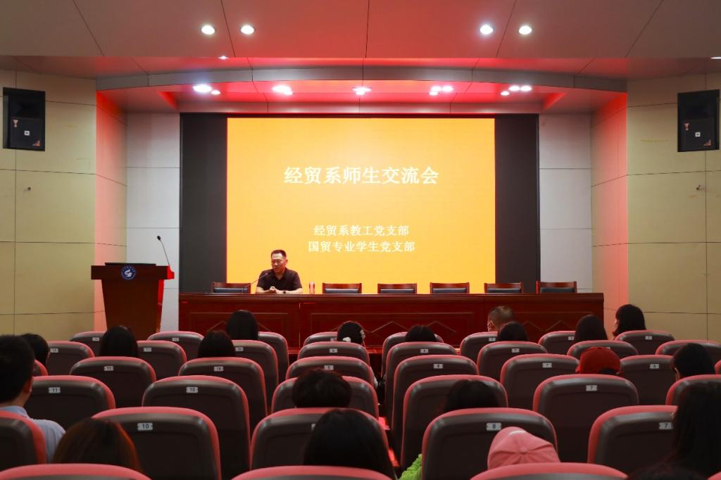 6月27日,国际经济与贸易系教工党支部与国贸专业员工党支部在公司楼433报告厅联合举办师生交流会。经理侯贵生参加交流会,会议由经贸系教工党支部书记马风涛主持。与会老师参加并为员工们解答了学习、生活、实习、考研、就业等问题。