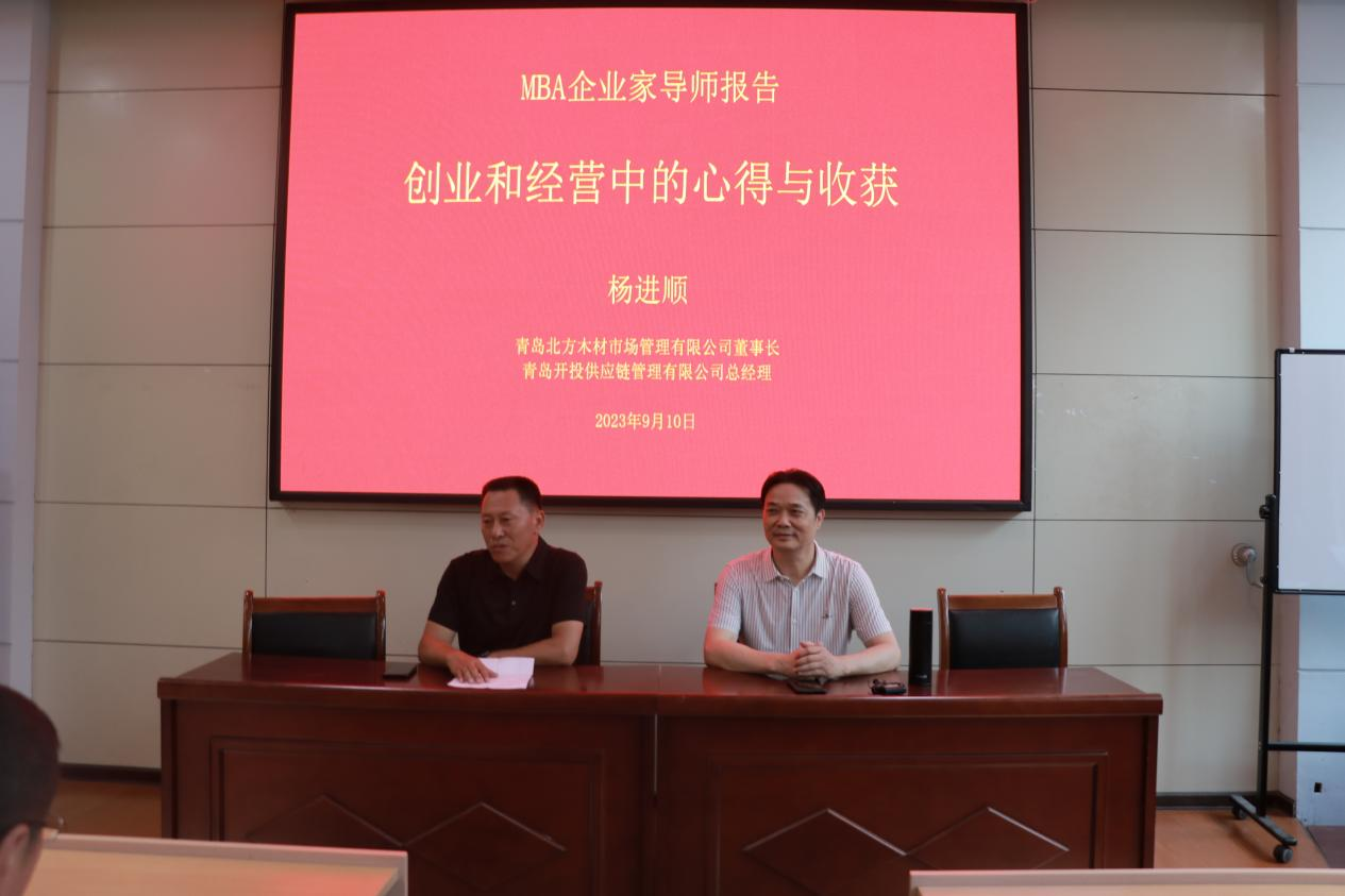 聘任仪式前,杨进顺董事长结合自己的创业经历和实干经验为2023级MBA做了题为“创业和经营中的心得与收获”的报告。