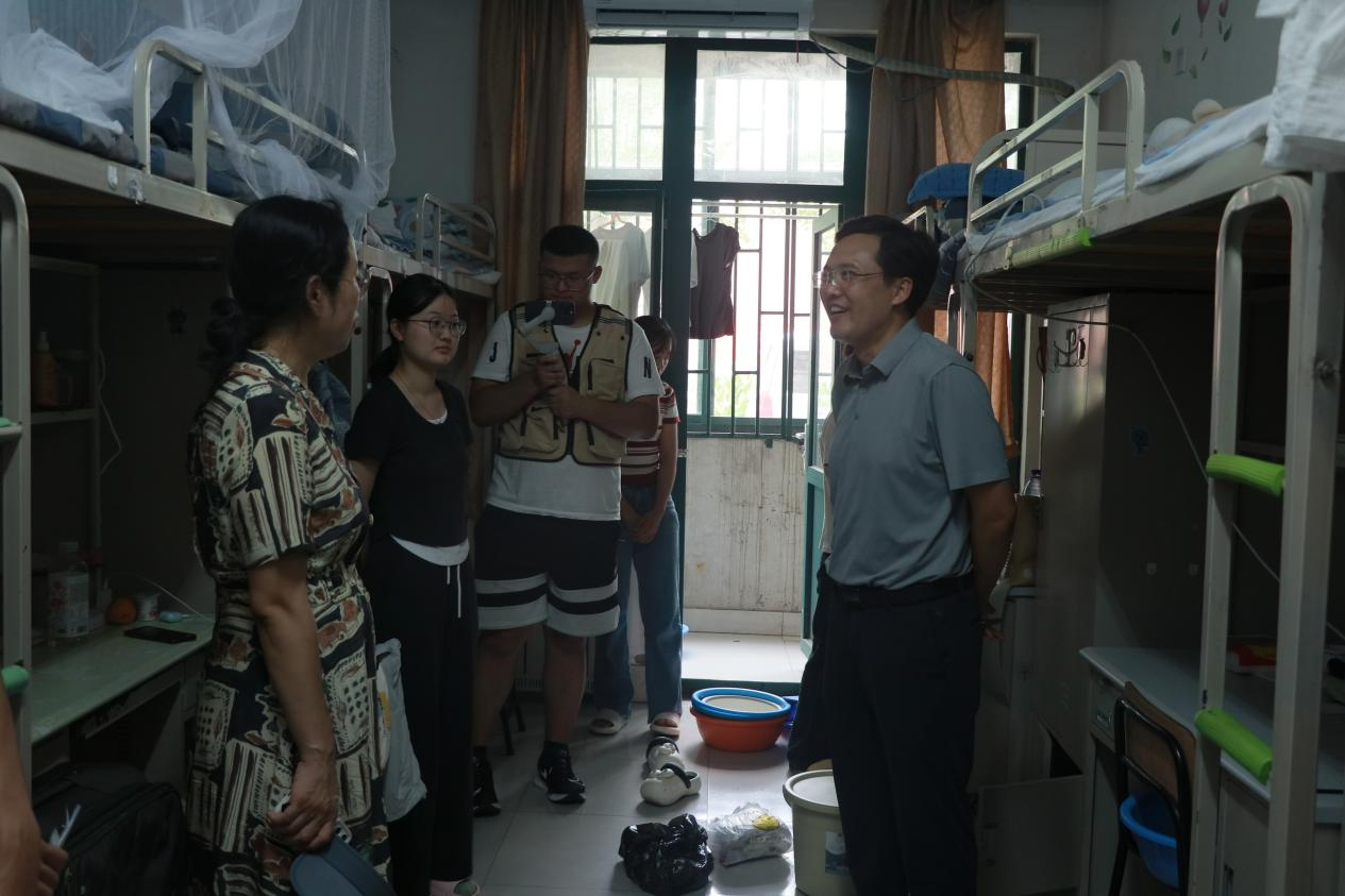 31日中午,公司党委书记庄兴华,党委副书记、副经理江谭、团委书记曲长胜和24级辅导员来到2024级本科新生宿舍楼,深入员工宿舍走访看望新生,向新生表达了公司的热烈欢迎,并关心、关怀新生对宿舍、校园环境的适应情况,鼓励同学们主动融入宿舍、班级集体,营造良好的人际关系,嘱咐同学们注意人身财产安全。