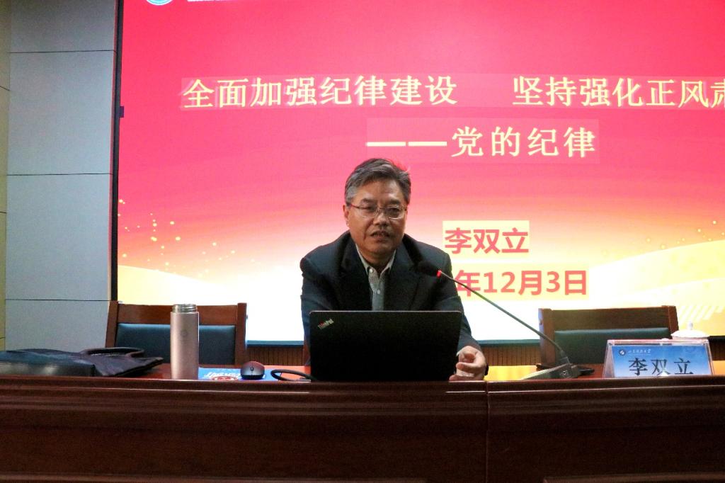李双立结合工作实际和典型警示教育案例,从“党的纪律概述、《中国共产党纪律处分条例》历次修订的背景和历程、《中国共产党纪律处分条例》修订内容及常见违纪问题剖析和抓好《条例》的贯彻执行,以严明的纪律推动党的自我革命”等四个方面,对党的纪律建设历程、《中国共产党纪律处分条例》核心要义以及党的“六大纪律”进行了全面深入讲解。