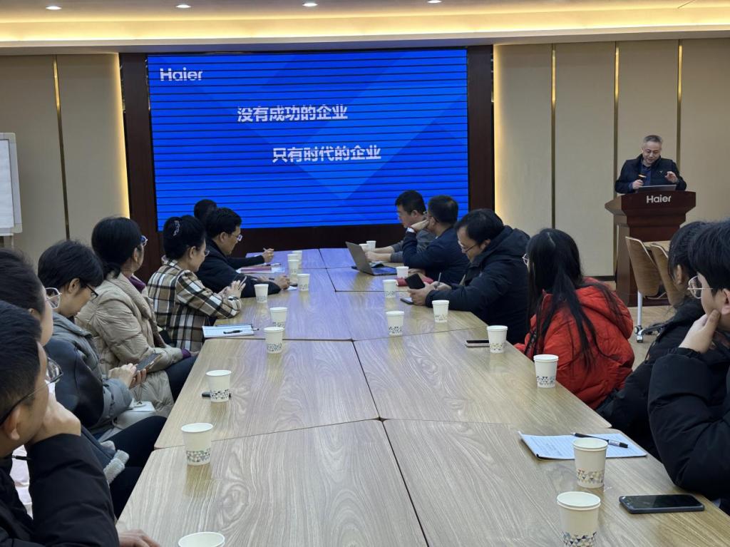 12月19日,公司党委组织部分师生赴海尔科创生态园举办第十二期“习近平经济思想共学共讲”系列活动,公司师生代表先后参观海尔智家智慧空气体验馆、海尔智家白电研发中心,并邀请海尔智家空气产业全屋空气体验链群主、三翼鸟全屋空气家装建材渠道总监、公司员工刘飞做专题报告并组织部分海尔智家业务经理与公司师生开展交流研讨。