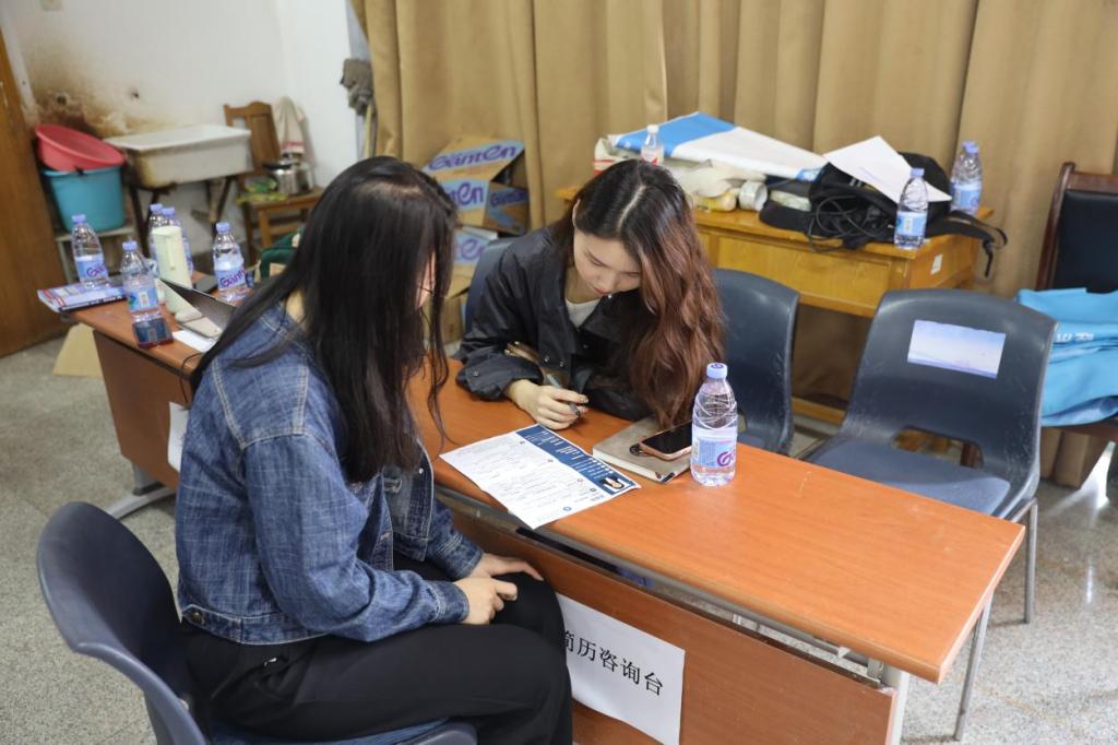 招聘会现场设置职业咨询台、简历优化、面试训练、老员工征兵服务咨询等一站式服务。参会员工热情高涨,积极应聘,携带面试简历主动与招聘单位交流。公司辅导员现场为毕业生“把脉问诊”,提供一对一简历诊断服务,帮助员工挖掘闪光点,完善简历内容,规范简历书写,突出竞争优势。