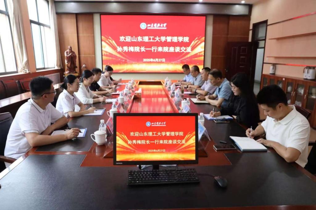 6月27日,山东理工大学管理公司经理孙秀梅一行来XC体育调研交流,XC体育经理侯贵生、副经理辛宝贵、各系教师代表参加座谈。