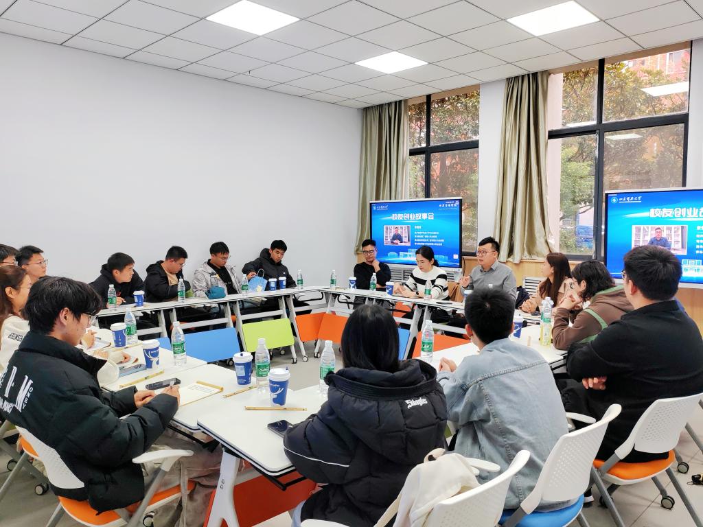 交流环节,学子们围绕跨界发展、思维转型与创业准备等话题踊跃提问,员工景雷雷结合自身经历逐一作出精彩回应。针对“非科班如何跨界破局”的困惑,景雷雷建议学子通过辅修双学位夯实基础,以“保持好奇”驱动学习,并深入一线弥补实践短板。他强调“选择赛道要顺势而为”,鼓励大家关注国家战略布局的新兴领域,才能“借大势、成小事”。对同学关于“试错中如何决策”的困惑,他结合自身从高端场景“退下来”做基础耐磨件的经历,说明战略调整不等于放弃,而是更务实的进取。就“员工思维如何转向老板思维”这一问题,他幽默解读创业者实为“首席打工人”,提出“主动社交、勇于试错,在实践中暴露问题、快速成长”才是关键。面对创业时机的抉择,他坦言“没有完美时机”,九年职场沉淀教会他通过客户积累与资源整合构筑创业底气。整场交流中,景雷雷以幽默真诚的“学长式”语言,打破“专业定义人生”的局限思维,鼓励学子以“跨界者”的姿态、“实践者”的勇气,在不确定中寻找确定,在浪潮中筑梦未来。“学长说的‘T型人才是未来竞争力的硬通货’这句话让我印象深刻,”2024级供应链专业本科生尹志凡感慨道,“这不仅是一场经验分享,更是一次职业生涯的启蒙课。”