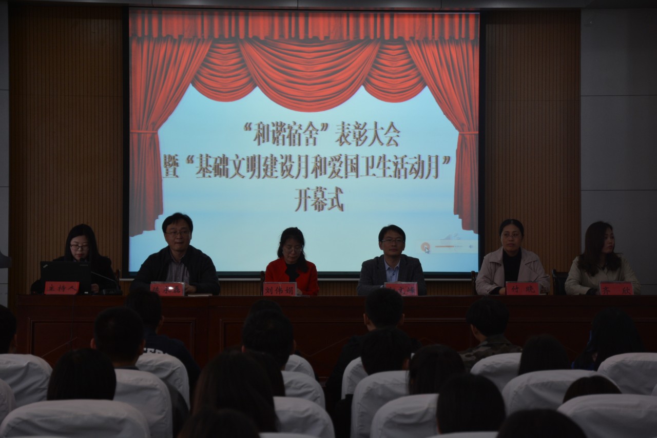 首先,齐欣老师宣读了2017-2018学年第一学期“和谐宿舍”及“优秀宿舍长”获奖的名单,C9-514、A1-644的获奖宿舍舍长作为和谐宿舍代表进行发言;付晓老师对“基础文明建设月暨爱国卫生月”活动方案进行了简单介绍,活动分三阶段,包括发动宣传、相关主题活动看展落实及评比表彰,旨在通过一系列品牌宿舍创建活动、舍规评比、收纳大赛、及安全知识教育等活动,普及安全知识,增强同学们预防传染病的意识,营造整洁有序的宿舍卫生环境。院团委书记陈永磊对“基础文明建设月暨爱国卫生月”活动的开展给予高度评价,鼓励员工干部、员工党员发挥先锋模范作用,做好示范表率,号召同学们积极参与进来,做好防传染病、养成良好的卫生习惯。