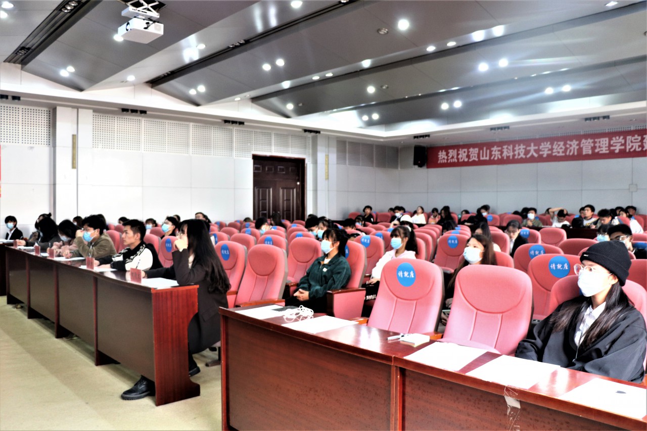通过专业内部的层层选拔,各专业挑选出了优秀作品参加本次评比。此次评选分为班徽班服介绍和专业风采展示两个环节。第一环节分为两组评比。依照抽签次序,会计、工管、金融、国贸、物流依次展示。演讲人通过PPT,介绍团队在设计和图案等方面的灵感与寓意,展现本专业的专业文化和风采。其中,国贸专业代表队运用地球、和平鸽、丝绸、经济统计图等元素进行班徽设计,其班服上的博士帽标志以及“只争朝夕,不负韶华”字样展现了专业形象和魄力,洋溢着青春,散发着朝气。每组作品展示之后,评委进行点评,并根据不足之处提出针对性建议。本次决赛设置了中场投票环节,在场观众积极参与,通过扫码参与线上投票。在第二环节专业风采展示中,各专业进行了才艺表演和视频展示。通过视频展示了班级同学的学习、生活;在才艺表演环节,个人和集体的精彩表现,展现了专业文化和凝聚力。最终,工管专业赢得了本次比赛的一等奖,会计、金融获二等奖,国贸、物流获三等奖。