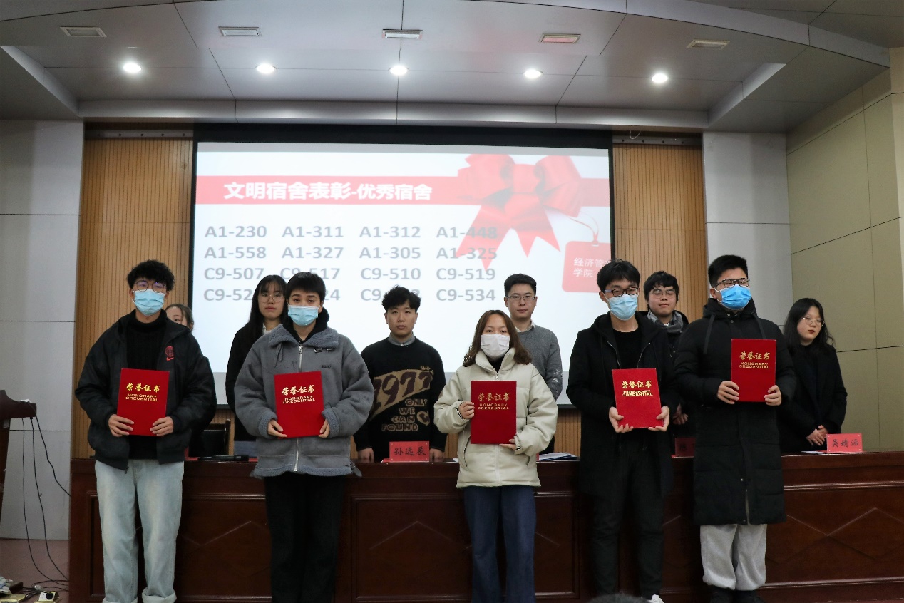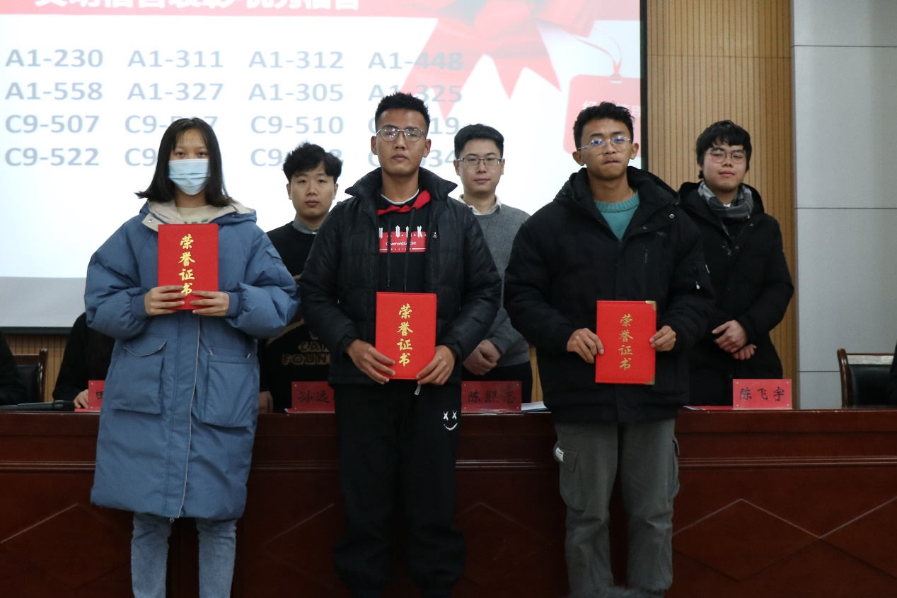 主持人宣布开场后,XC体育基础文明建设月闭幕式正式开始。XC体育自律会主任田清文宣读了A1-230等16个“优秀宿舍”、A16-105等10个“标兵宿舍”以及3个优秀班级的表彰名单,参会嘉宾为他们颁奖。颁奖结束后,优秀宿舍代表姜斌和邵健健同学上台发言。标兵宿舍代表邵健健说:“宿舍成员有责任、有义务去保持好宿舍的卫生,为宿舍做出贡献,舍友要互相监督,互相帮助,努力学习,争取取得更好的成绩。”陈照志希望同学们要充分发挥文明宿舍的作用,消除安全隐患,齐心协力、共筑文明宿舍。