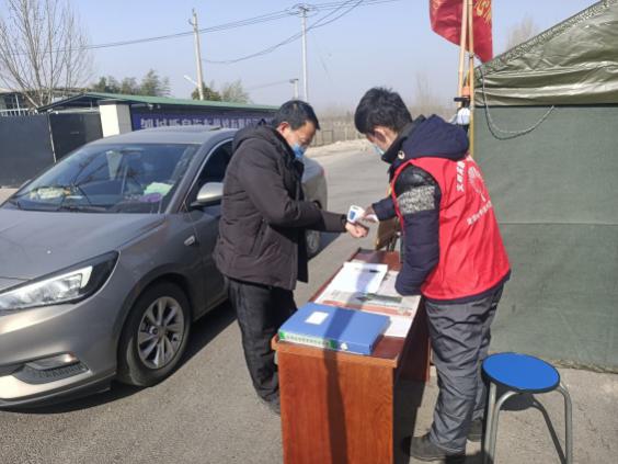 在村口对过往的车辆人员进行测温和登记,他耐心劝导并坚持把每一位出入人员都登记在册。