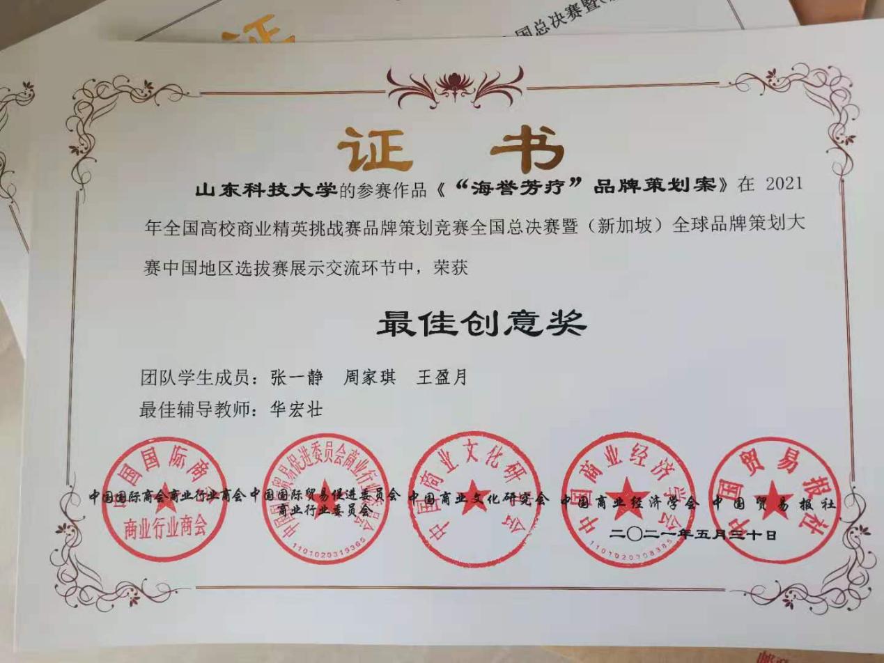 公司物流管理2020-1张一静、周家琪及物流管理2020-2王盈月的3位同学入围了比赛,经过3天的激烈角逐,本次参赛的代表队获得全国商业精英挑战赛品牌策划赛国家二等奖的优异成绩,并在展示交流环节中荣获“最佳创意奖”,经管公司荣获“最佳院校组织奖”,华宏壮老师获得“最佳辅导教师”荣誉称号。