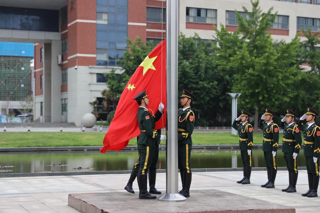 6时30分,伴随着一声响亮的“出旗!”,升旗仪式正式开始。校国旗护卫队手护鲜艳的五星红旗,迈着整齐划一,铿锵有力的步伐走向旗台,气氛庄严肃穆。伴随着激昂的《义勇军进行曲》响起,五星红旗在师生的注视中冉冉升起。