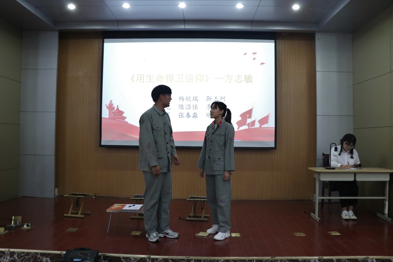 本次宣讲会共分为三个篇章。第一篇章“烽火连三月,家书抵万金——红色的记忆”,同学们通过讲述一封封家书背后的故事带现场观众重温了先辈们无私奉献的家国情怀。节目《等待》追思隐姓埋名26载、为祖国大业奉献青春的邓稼先;《甘将热血沃中华》歌颂了忠于信仰却依旧牵挂尚在年幼孩子的英雄母亲赵一曼;《精忠报国男儿汉 元帅正气留人间》讴歌了追求真理、心系故土的将军聂荣臻。第二篇章“高山安可仰,徒此揖清芬——走进榜样的力量”,话剧《用生命捍卫信仰》,展现了中国共产党党员方志敏的铮铮傲骨和坚定信仰;《真理的味道非常甜》的故事,深刻展现了革命先辈对真理的渴望与追求;《热血铸军魂》再现了抗美援朝战士和当代戍边战士穿越时空的对话,展现了战士们时刻为国家奉献一切的大无畏精神。第三篇章“初心犹未改 九州艳阳天——走进新时代”,《砥砺奋进心向党,青春筑梦新时代》、《铭记党史再扬帆 喜迎建党100年》带领观众回顾了中国共产党的奋斗历程,讴歌了无数为国家繁荣富强奋斗不息的革命先烈以及当代楷模。快板《改出来的美好》,赞颂了改革开放以来中国的伟大成就以及在中国共产党的带领下中国人民为实现民族复兴付出的不懈努力。最后,全体起立,合唱《没有共产党就没有新中国》,本次党史宣讲会落下帷幕。