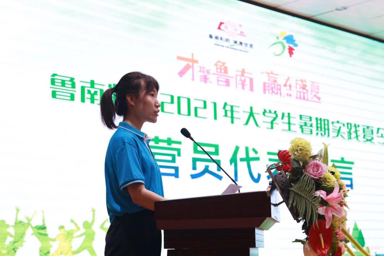 开营仪式上,鲁南制药集团校企合作办主任周冰致词,他希望同学们可以从实践中汲取营养,成为国家栋梁之材。电子商务专业18-2班张雪瑶作为员工代表发言,她希望同学们珍惜本次学习实践的机会,践行沂蒙精神,做到知行合一,在未来发展的路上成为更优秀的自己。
