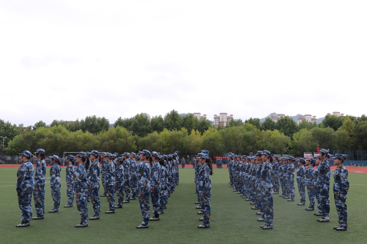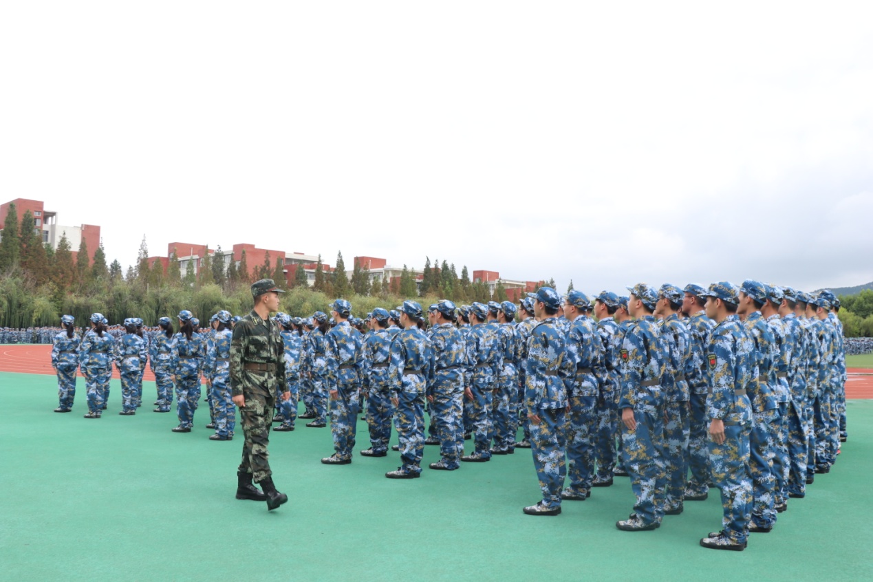 开训仪式上,新生军训教官及辅导员向新生介绍了新生军训连队及课程设置等内容,希望同学们上好军训这门“开学第一课”,发扬踊跃争先,艰苦训练的优良传统,严格遵守军训纪律和作息时间。