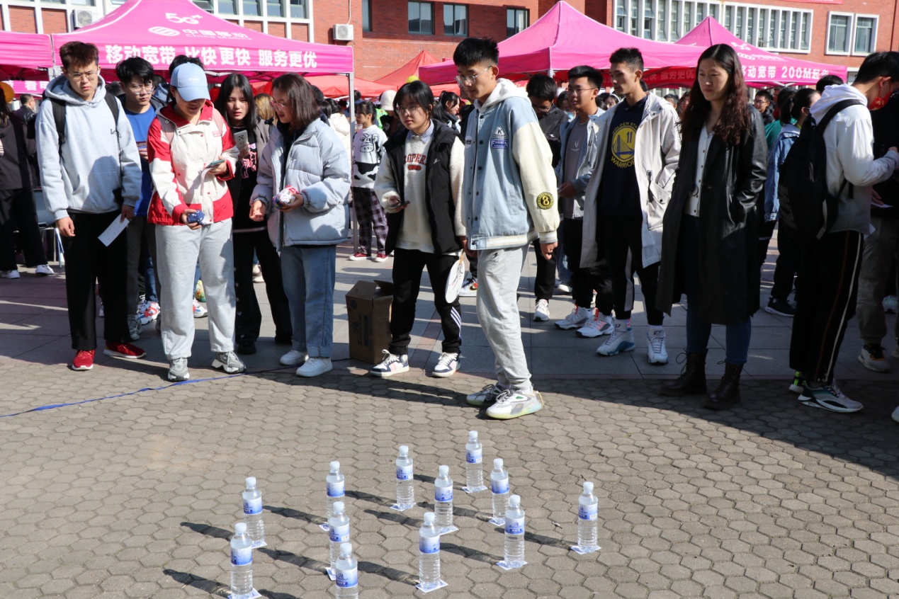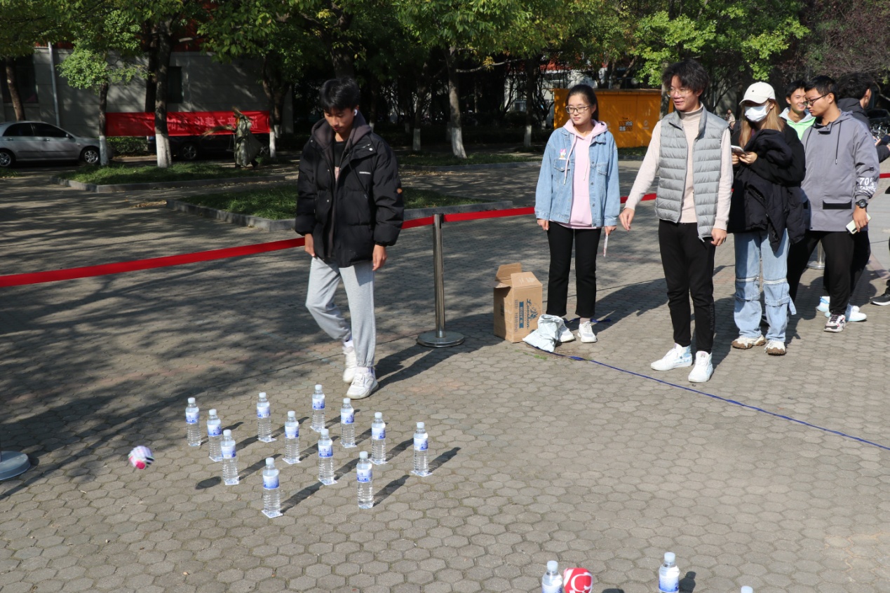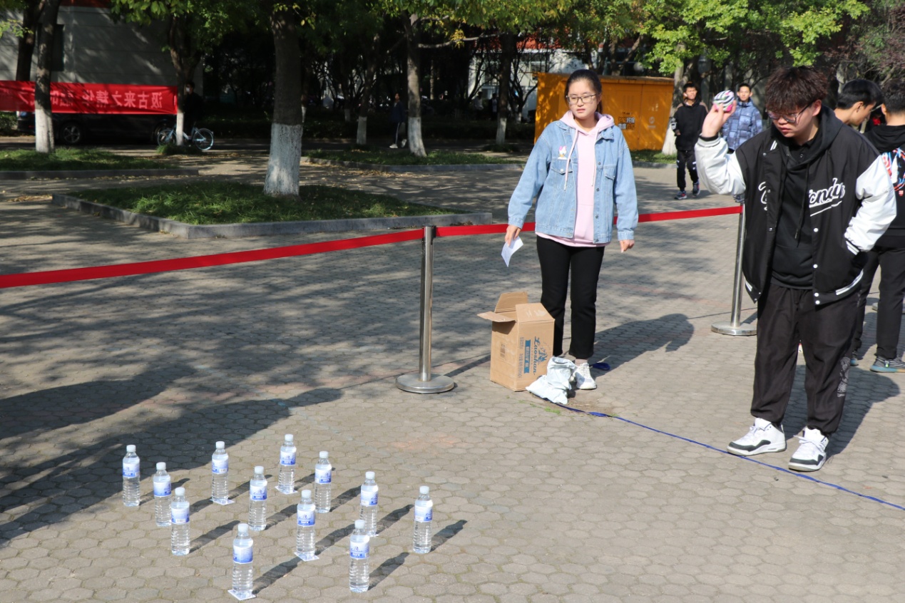 击壤是一项古老的投掷游戏,本次活动将传统游戏与谜语相结合,参与的同学们用沙包朝目标掷去,打中后根据所中标签猜对应的灯谜,活动现场吸引了很多同学参与进来。