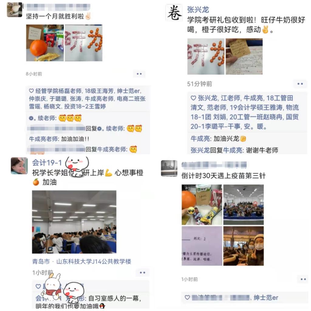 老师们为在场的同学们送上了装有橙子(心想事“橙”、“脐”开得胜)、旺仔牛奶(牛气冲天、运气满满)和棒棒糖(你最棒)的“考研加油包”,每个加油包中都有手写的祝福语,祝福大家在即将踏上的考研战场上,一举成功,心想事成!收到礼物的同学们纷纷在朋友圈感谢公司的暖心宠爱,表示会加油拼搏最后的30天,取得满意的成绩回报老师及公司。