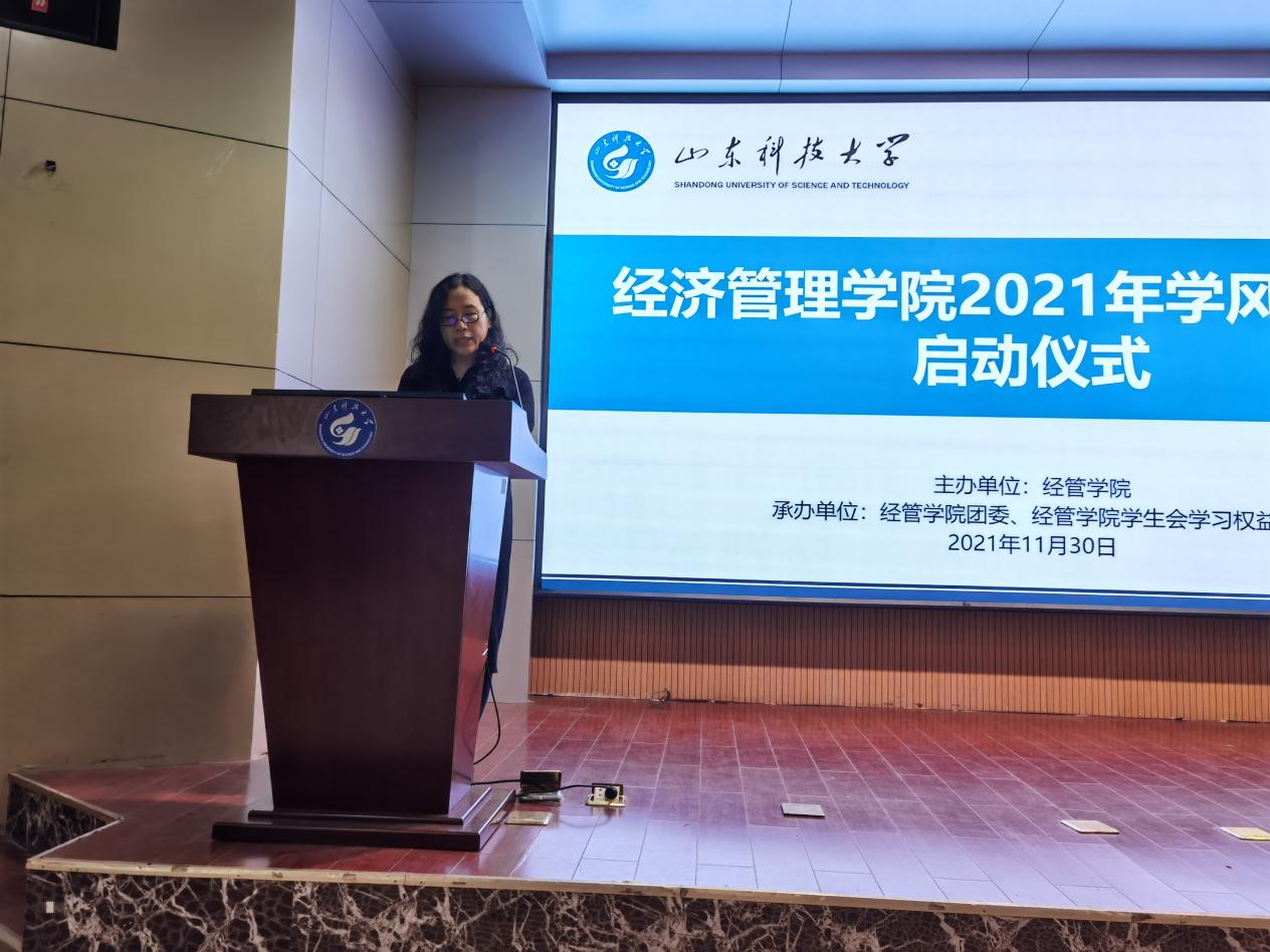 开幕式上,江谭谈到公司始终把学风建设作为重点工作来抓,从严治教,以教风促学风,积极推动良好学风建设,为同学们营造一个良好的学习环境,希望大家和老师们携手共同努力,营造良好的校园学习氛围。员工会副主席宋可馨宣读了学风建设倡议书,向同学们提出活动倡议。员工会周杰宣读了上学年学风建设月的工作总结及本学年学风建设月的实施方案。金融19-1班侯开豪、金融19-2班孙博文作为上届优秀学风建设的项目的负责人分享了班级学风建设的经验。