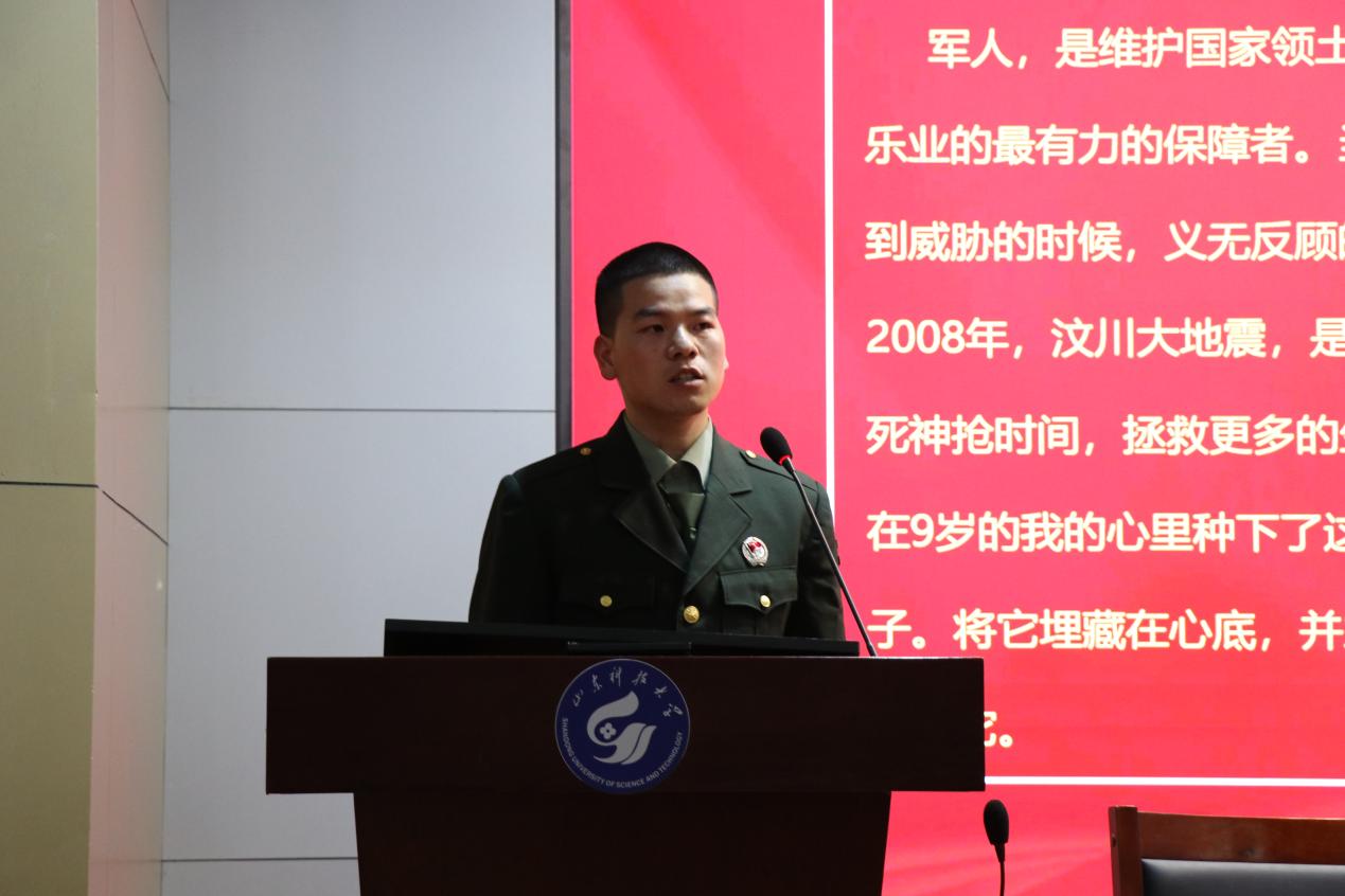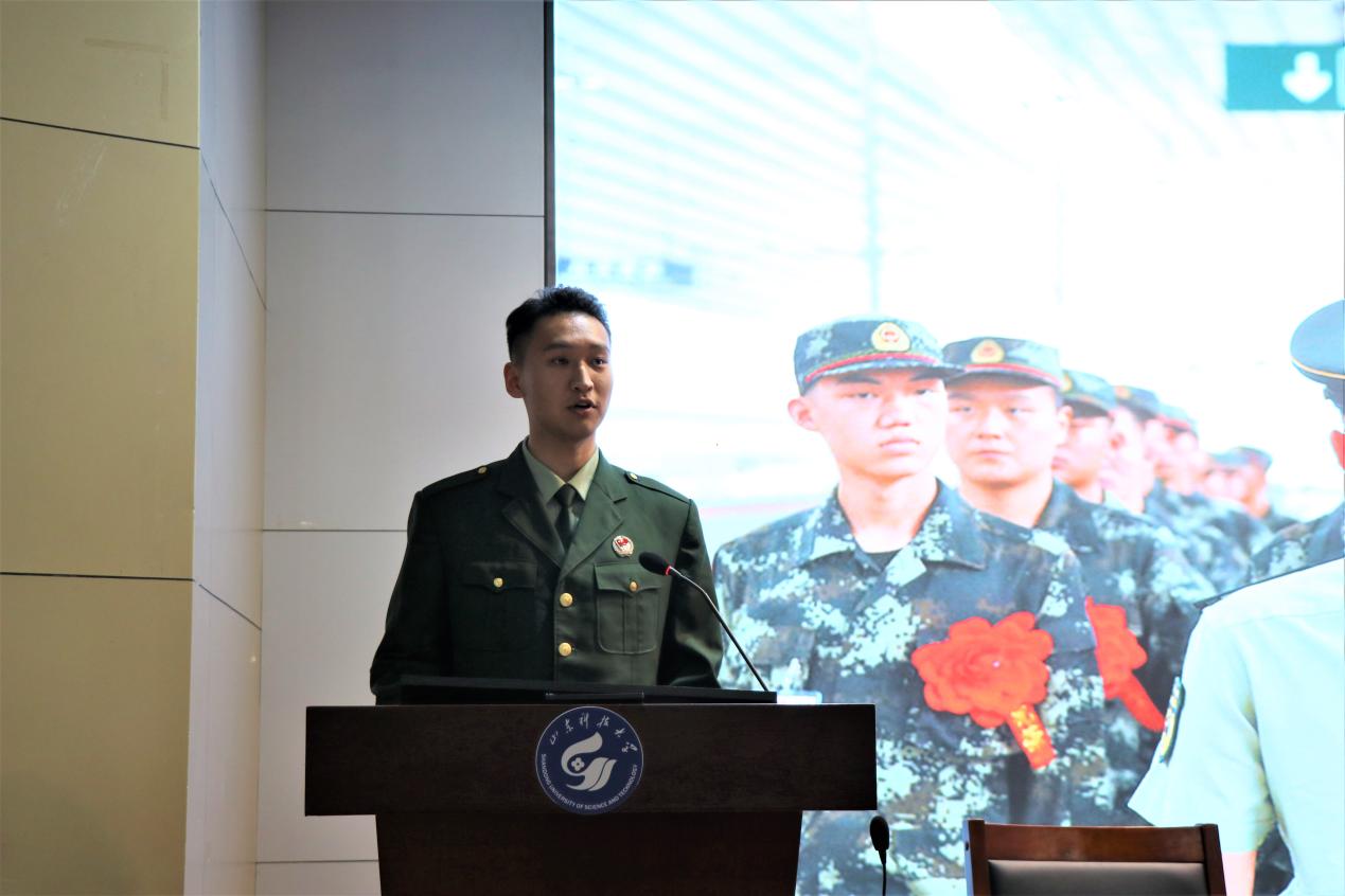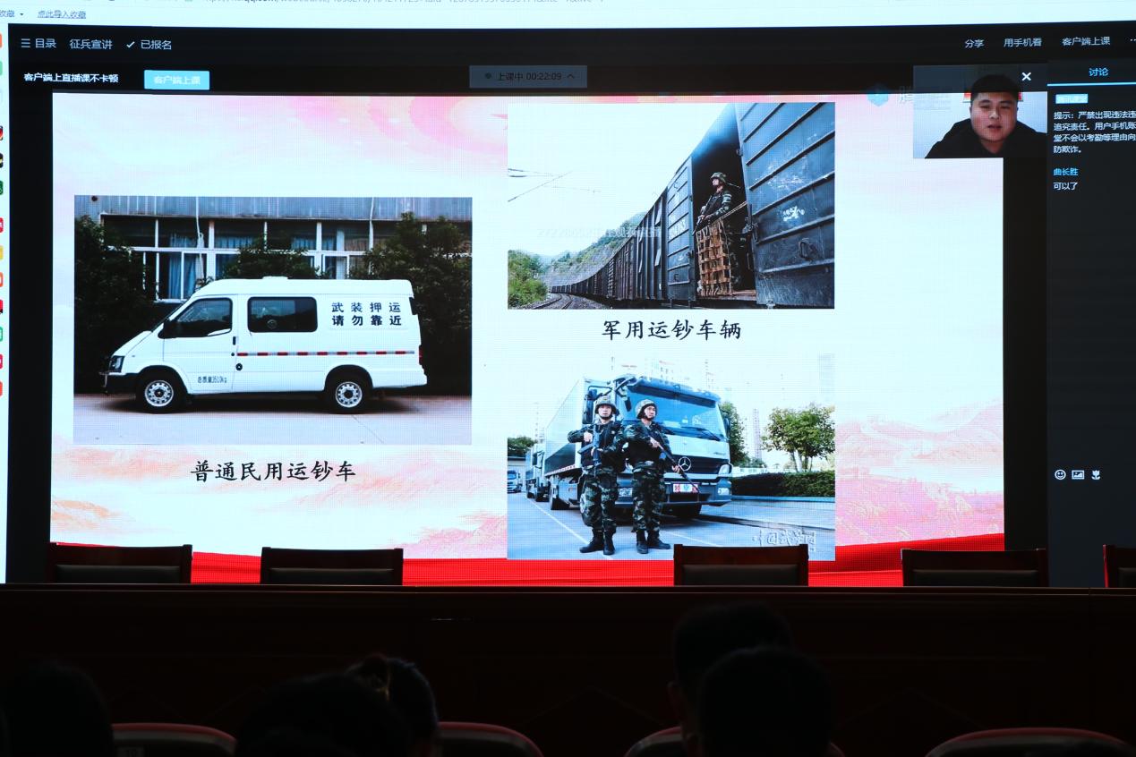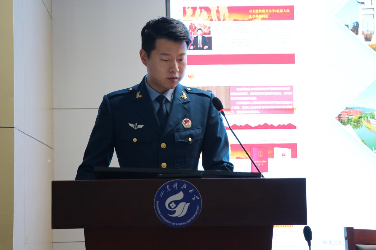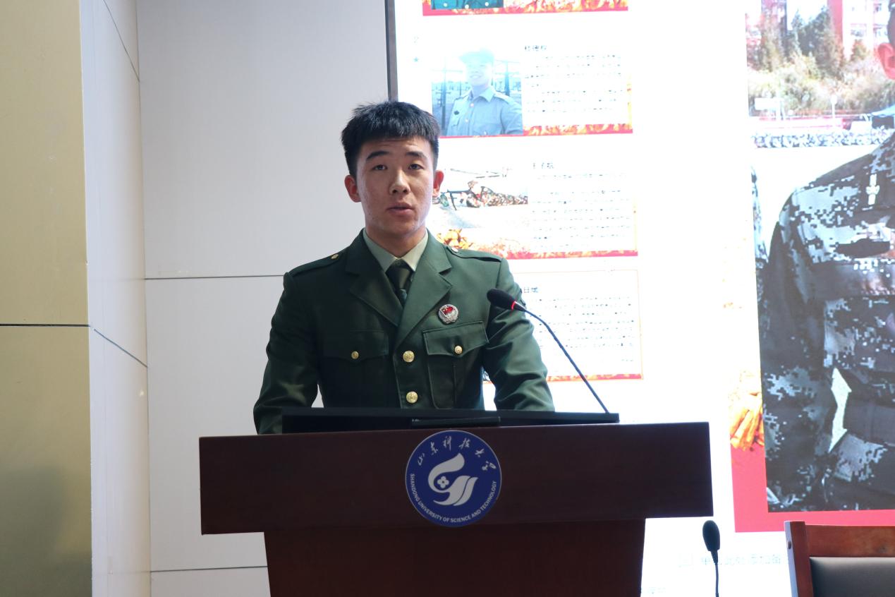 会上,曲长胜向同学们介绍了应征入伍的意义和价值,同时希望同学们深入了解征兵的政策和入伍流程,提前做好准备。孙日斌、于子航分别分享了自己在军营中的训练及学习生活,向同学们介绍了在军中生活、学习的暖心时刻,鼓励同学们积极参军入伍,提升自己综合素质。翟胜杰(线上)、刘镇豪(线上)给同学们解读了征兵政策、入伍流程、优惠政策,并为大家答疑解惑,动员同学们积极响应国家号召,携笔从戎,投身保卫祖国和平的伟大事业中。